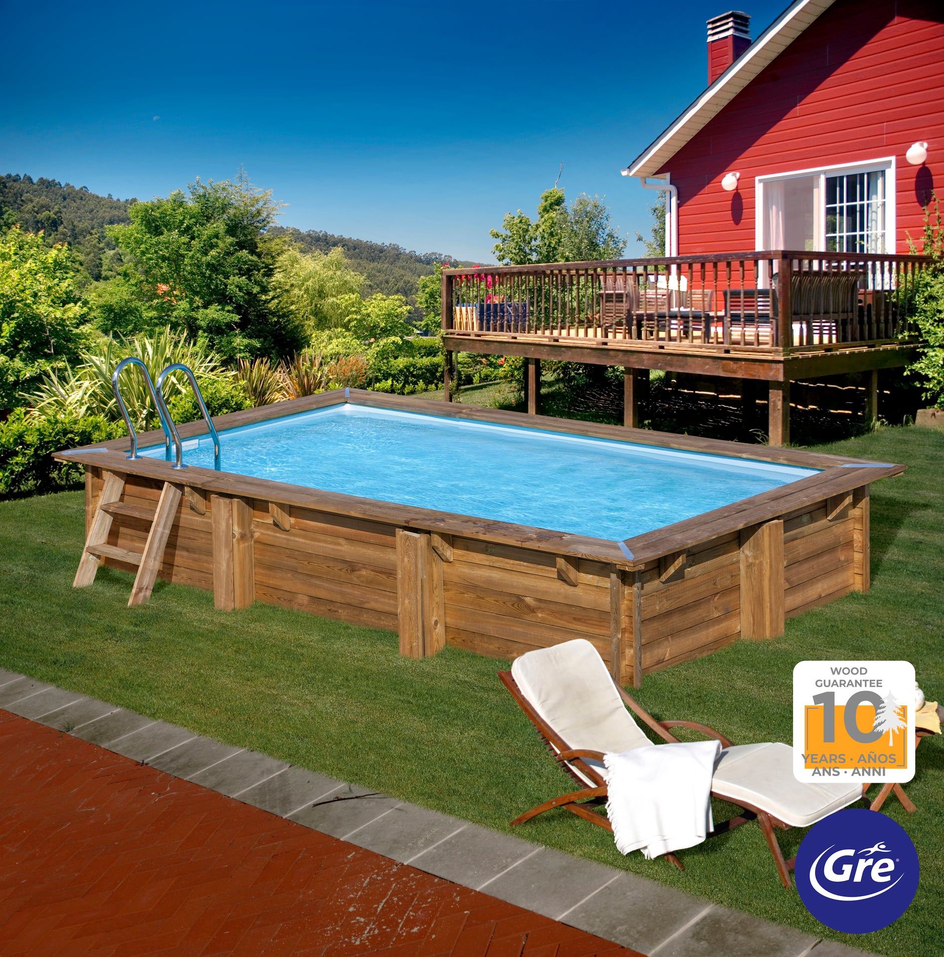 MARBELLA 2 – Rechteckiger Echtholzpool 420 x 270 x 117 cm (Außenmaß) – vol: 8,5m3 – 75/100 Poolfolie – 4m3/h Sandfilter – Edelstahlleiter – Boden- und Wandschutzvlies