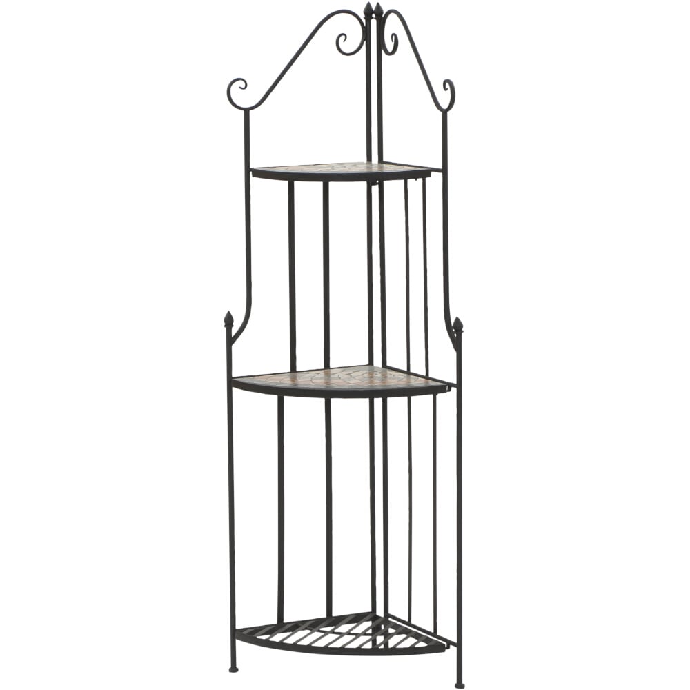 Eckregal Prato, 34x34x140 cm, Gestell aus Stahl pulverbeschichtet in matt schwarz, Flächen aus Keramik in Mosaikoptik, mit weißen, rutschhemmenden Kunststoffgleitern