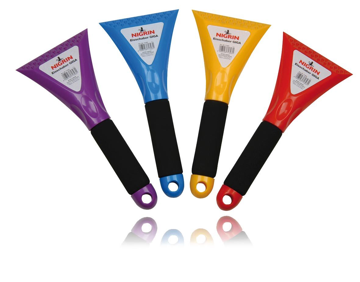 Die Eisschabkante des Eiskratzers ist 120 mm breit. Extra scharfe Eisbrechzähne helfen, auch hartnäckige Eisplatten aufzubrechen. Durch die präzise Eisschabkante wird das Eis von der Scheibe großflächig abgekratzt. Der NIGRIN Eisschaber GIGA besteht aus robustem, temperaturbeständigem ABS Kunststoff.
