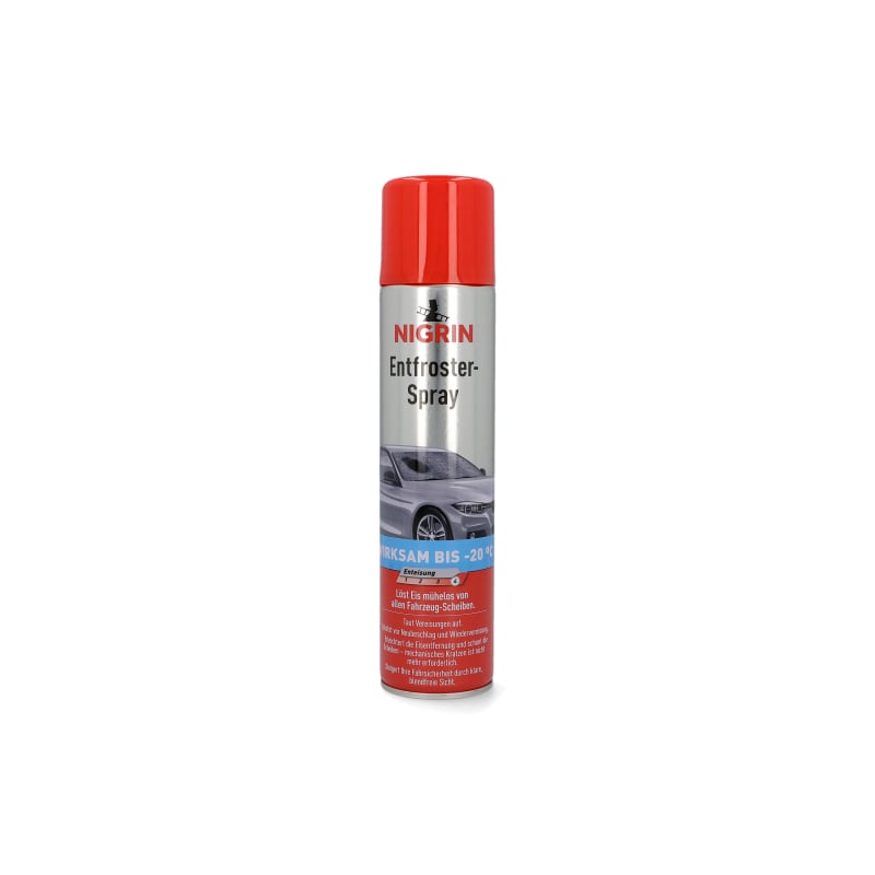 NIGRIN Entfroster-Spray ist zur mühelosen und schonenden Enteisung von Fahrzeug-Scheiben geeignet. Durch die schnelle und effektive Wirkung ist der Einsatz eines mechanischen Eiskratzers in der Regel nicht mehr notwendig. Das erleichtert Ihnen die Eisentfernung und schon die Scheibenoberflächen.