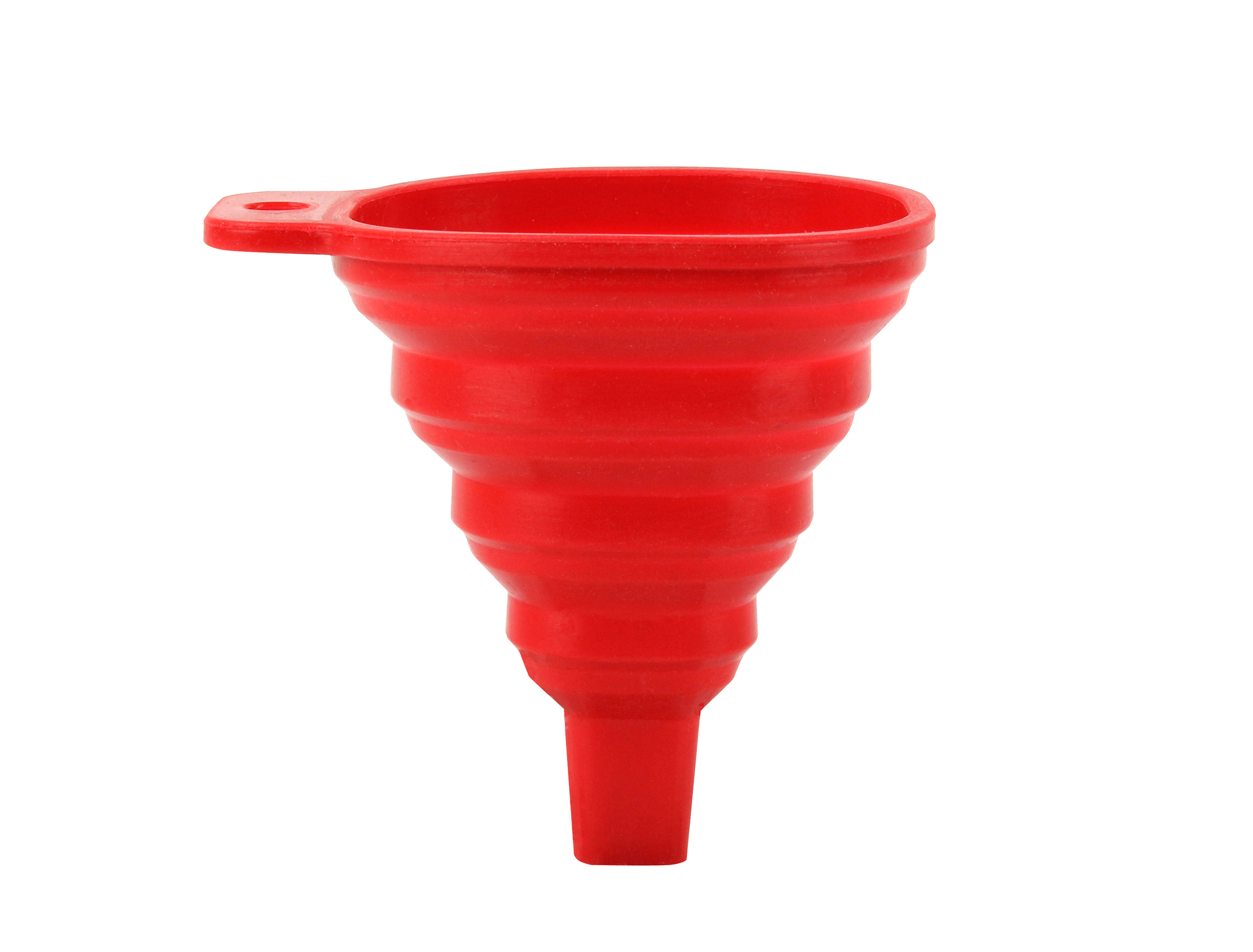 Faltbarer Trichter zur Verwendung im Kfz, in der Werkstatt oder im Haushalt. Ist beständig gegen Hitze, Bezin und Motoröl, Spülmaschinenfest und Lebensmittelecht.