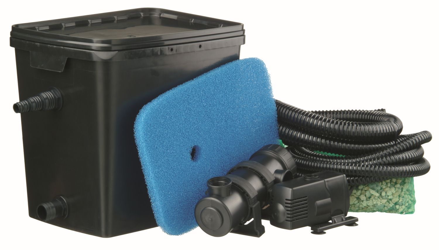 Teichfilter-Set Plus 7000 – Einkammer-Teichfilterset inklusive Teichpumpe und UVC Gerät sowie Anschlussmaterial, für mittelgroße Teiche bis zu 7000 Litern Fassungsvermögen.