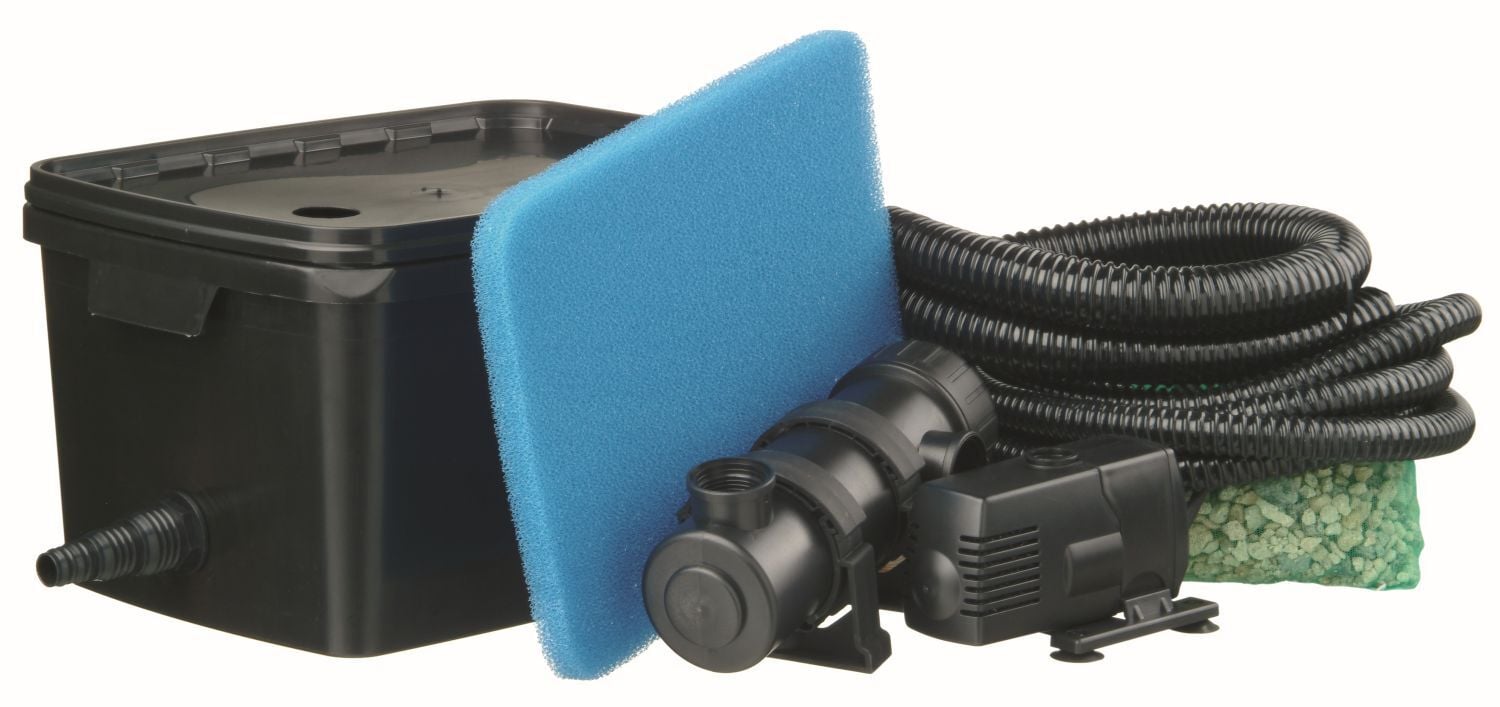 Teichfilter-Set Plus 2000 – Einkammer-Filterset inklusive Teichpumpe und UVC Gerät sowie Anschlussmaterial, für kleine Teiche bis zu 2000 Litern Fassungsvermögen.