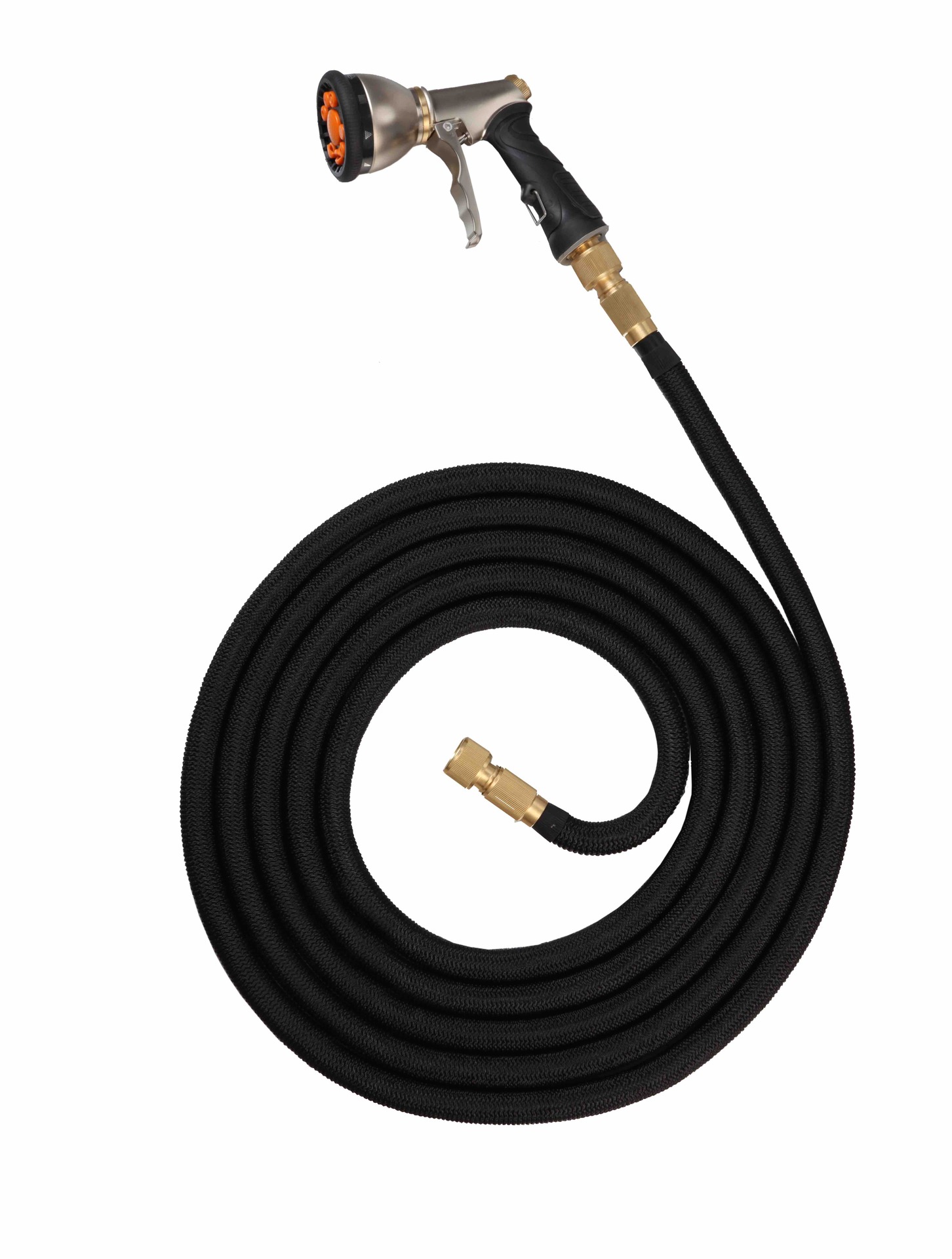 Der Mr. Gardener Gartenschlauch dehnt sich unter Wasserdruck auf seine 3-fache Länge aus und zieht sich nach Gebrauch selbständig wieder zusammen, wenn er entleert wird. Ideal für Camping, lässt sich platzsparend verstauen.