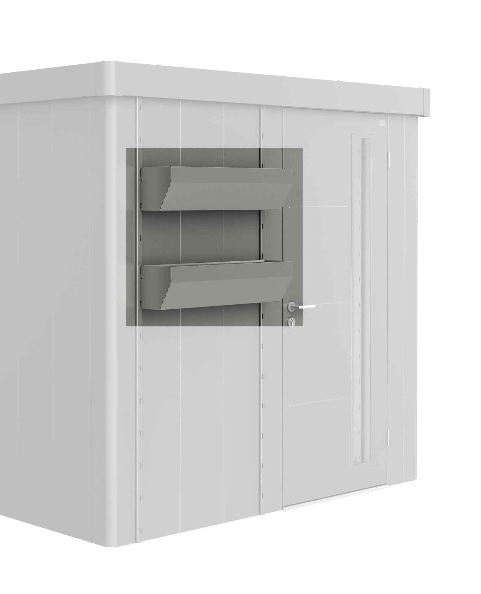 Zwei Steher in der Farbe des Gerätehauses werden an der Außenwand angeschraubt und die Blumenkästen in beliebiger Höhe eingehängt. Kunststoffeinsätze zur einfacheren Bepflanzung werden standardmäßig mitgeliefert. Tipp: Für das Gerätehaus Neo ist das FloraBoard auch für das Seitendach mit Seiten- oder Rückwand erhältlich.