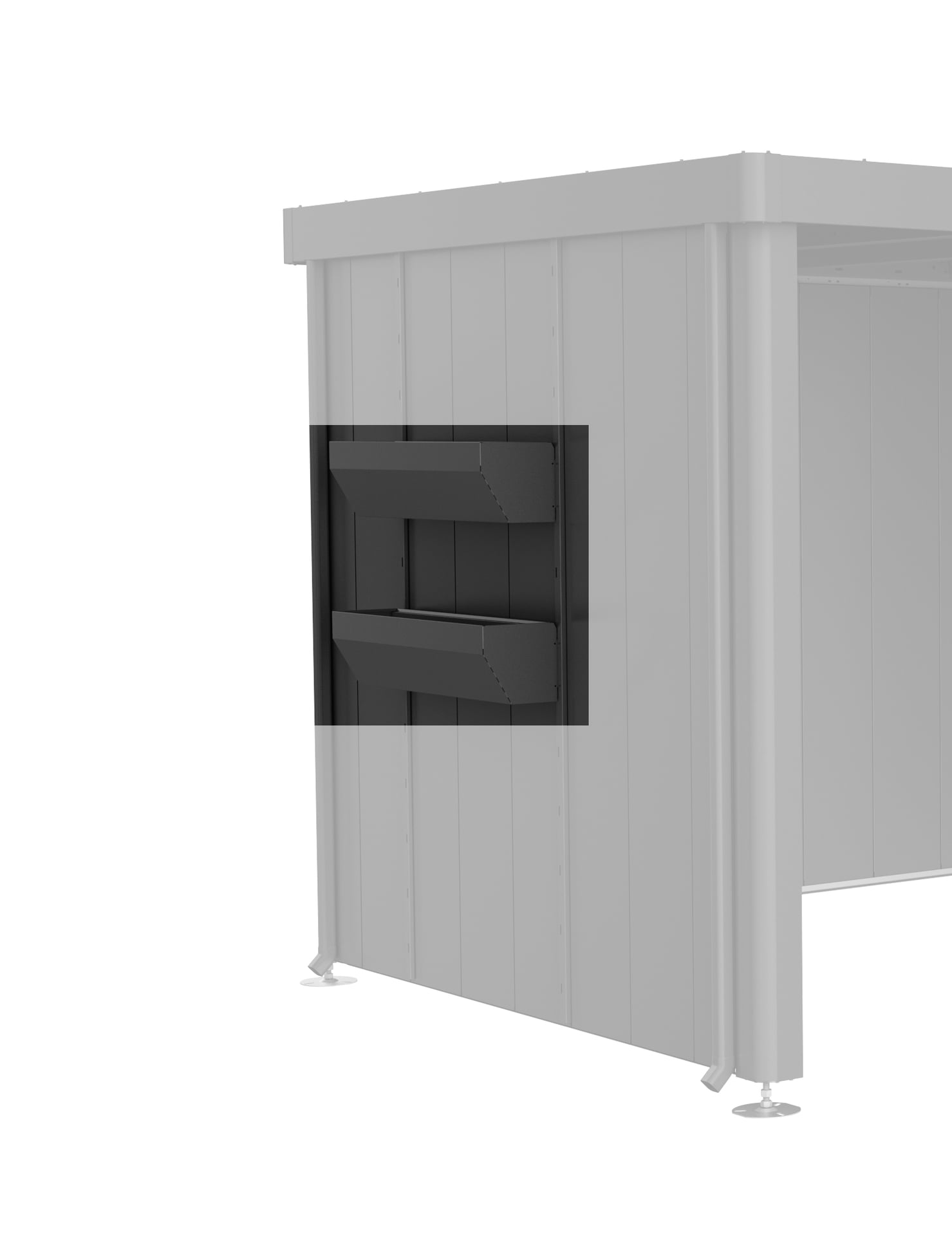 Zwei Steher in der Farbe des Gerätehauses werden an der Außenwand angeschraubt und die Blumenkästen in beliebiger Höhe eingehängt. Kunststoffeinsätze zur einfacheren Bepflanzung werden standardmäßig mitgeliefert. Tipp: Für das Gerätehaus Neo ist das FloraBoard auch für das Seitendach mit Seiten- oder Rückwand erhältlich.