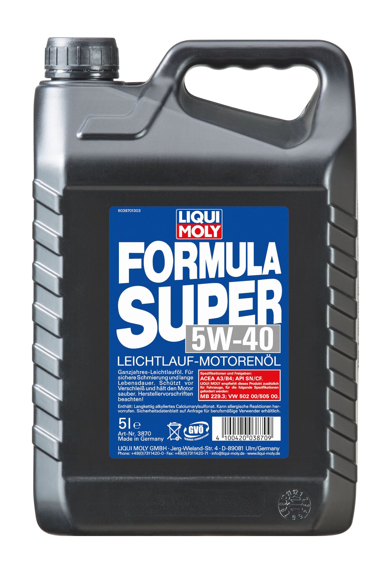 Formula Super SAE 5W-40 ist ein Hochleistungs-Leichtlaufmotorenöl für den ganzjährigen Einsatz auf Basis Synthese Technologie. Ausgewählte Grundöle und ein hoher Gehalt an Additiven gewährleisten selbst bei extremen Betriebsbedingungen eine optimale Schmierung.