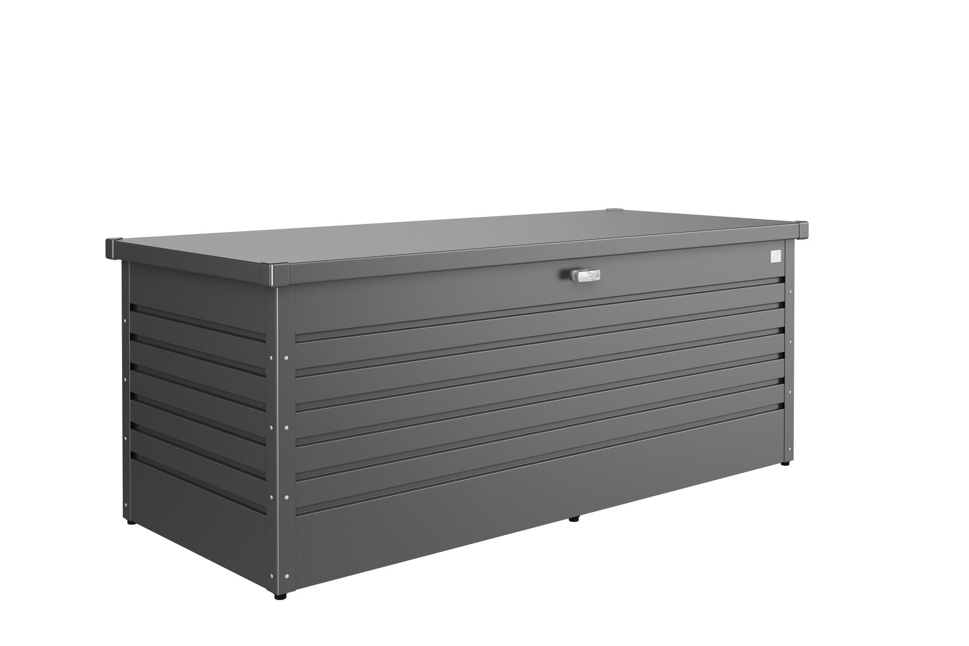 Die Gartenbox steckt locker all das weg, wofür Sie keinen geeigneten Aufbewahrungsort haben. Ideal zum Verstauen von Sitzkissen, Sonnenliegen, Klappstühlen, Spielzeug, Sport- und Campingutensilien. Die ideale Aufbewahrungsbox für allerlei Krimskrams im Freien! Durch hochwertige Materialien eine dauerhafte Lösung.