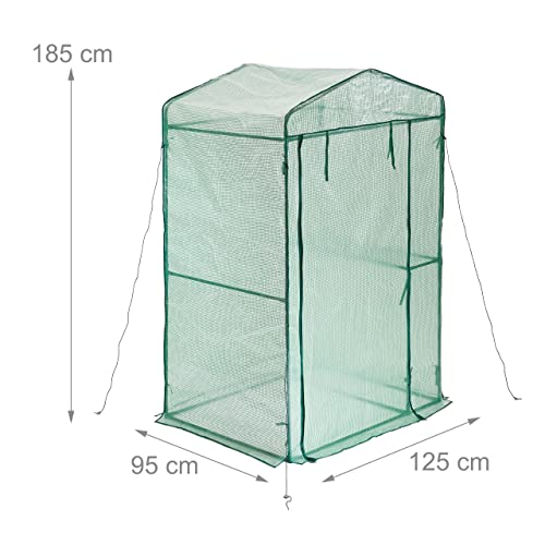 Relaxdays Foliengewächshaus, HBT: 185 x 125 x 95 cm, begehbares Anzuchthaus mit Ablage, Eisen & PE, Reißverschluss, grün