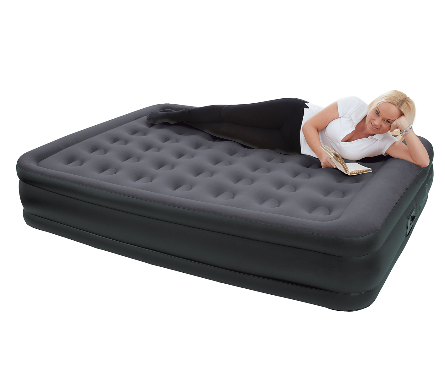 Gästebett, ca. 203x157x47 cm, mit integrierter Elektropumpe, mit beflockter Oberfläche, Farbe: anthrazit, in Tragetasche