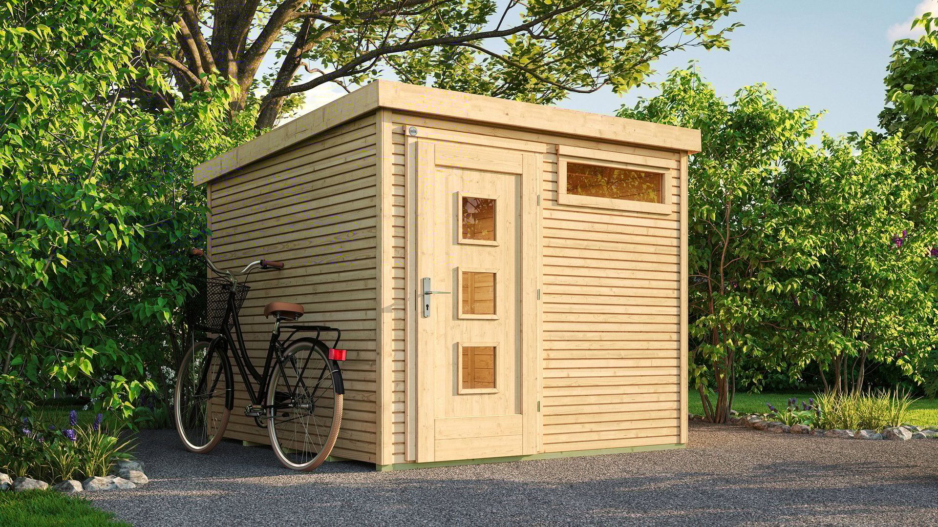 Das WEKA Gartenhaus 171 wekaLine überzeugt mit modernem und gleichzeitig wohnlichem Design. Für ideale Stabilität sorgen 28 mm starke Blockbohlen im exklusiven wekaLine-Profil, ein 19 mm starkes Massivholz-Flachdach sowie der 19 mm starke Massivholzboden. Sämtliche Holzteile sind aus nordischem Fichtenholz gefertigt und stehen für hervorragende WEKA-Qualität. Dank den Abmessungen des WEKA Gartenhaus 171 sowie der hohen Seitenwände, bieten sich Ihnen ein ganz besonderes Raumgefühl und individuelle Gestaltungsmöglichkeiten. Eine hochwertige Rahmen-Einzeltür mit 3 Lichtausschnitten und Griffgarnitur inklusive Profilzylinderschloss sowie ein feststehendes Fensterelement sorgen für einen lichtdurchfluteten Innenraum und Blick in den heimischen Garten. Lassen Sie die Seele baumeln und genießen die Auszeit vom Alltag in Ihrem persönlichen WEKA Gartenhaus.