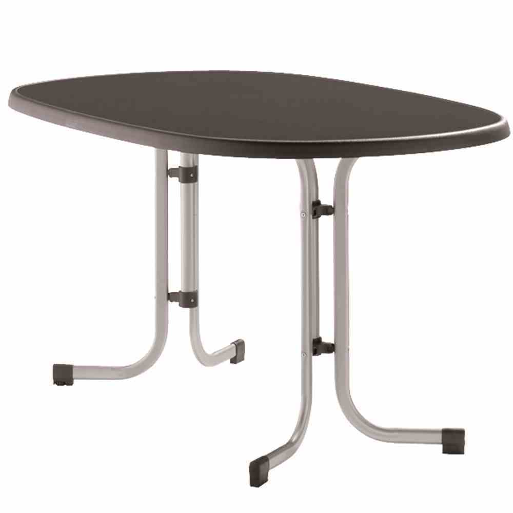 Boulevardtisch 252/, 140x90x72 cm, Gestell aus Stahl polyesterbeschichtet in graphit, Tischplatte aus Mecalit®-Pro in anthrazit, oval, höhenverstellbar, empfohlen für max. 4 Personen, made in Germany