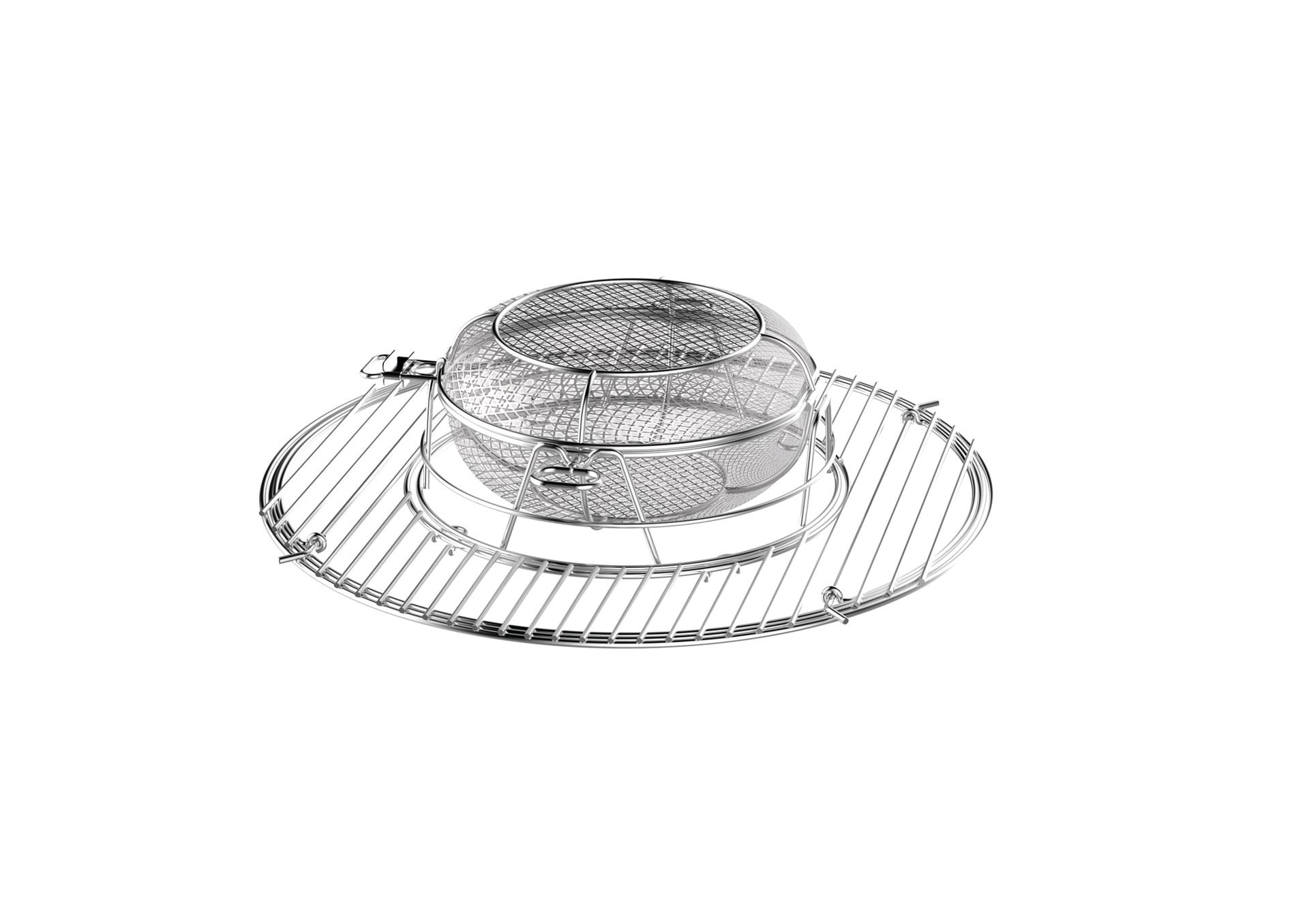 Der Gemüsekorb-Einleger ist perfekt für das Rost in Rost System rund mit 57 cm Durchmesser geeignet. Mit verchromtem Stahlgestell zum einfachen Wenden, ermöglicht er ein schonendes Garen von Gemüse und erhält Nährstoffe und Aromen. Das passende Zubehör für das Mr. Gardener Roasting-System.