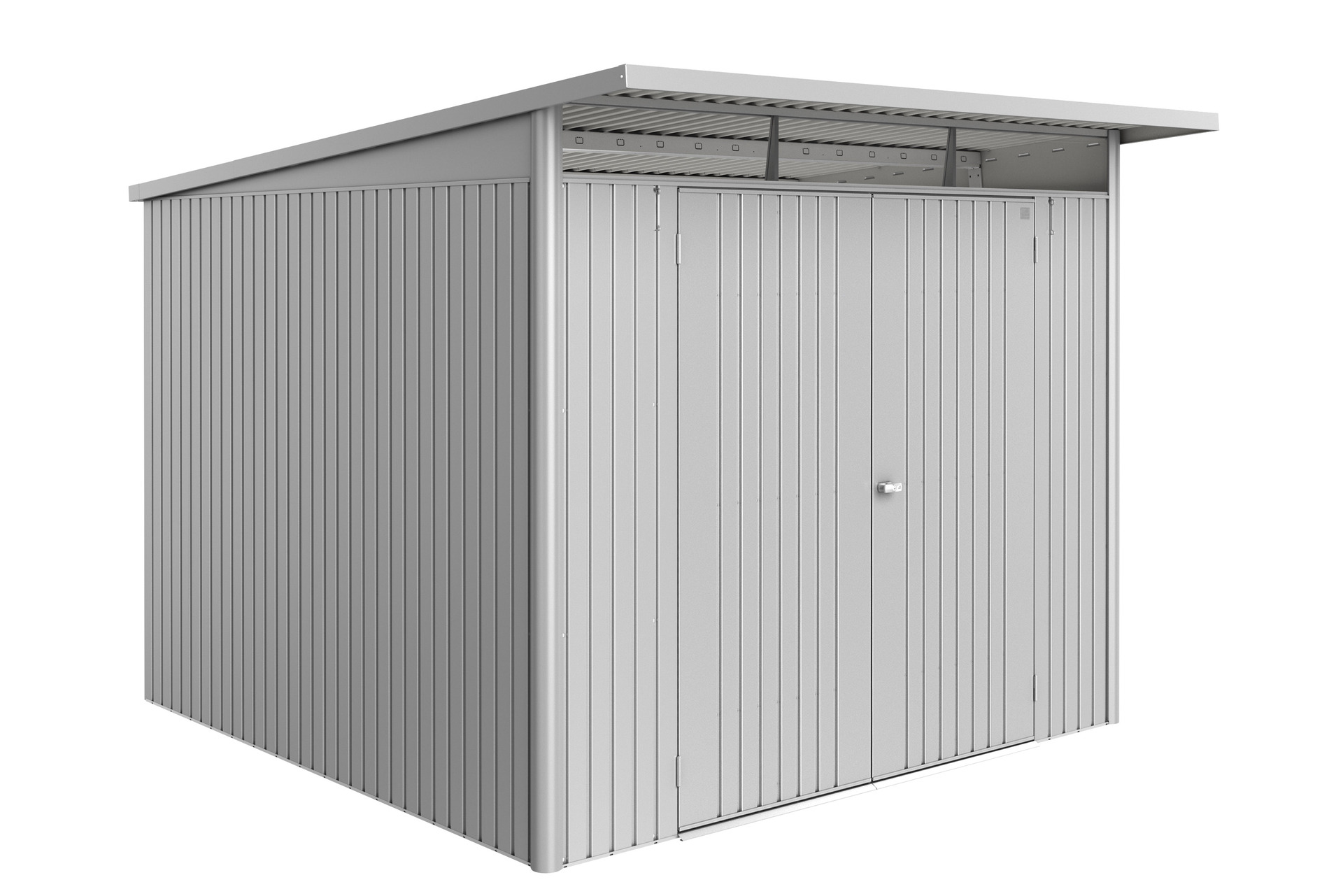 – Breite: 2600, – Farbe: silber-metallic, – Gewicht: 129,2, – Höhe: 2170, – Länge: 3000, – Material: Stahl, – Produktart: Gerätehaus