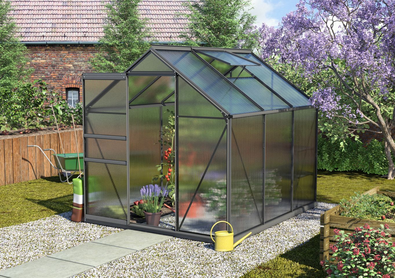 Leichter geht‘s nicht: Mit seinem unkomplizierten Aufbau, der großen Auswahl an Farben und der praktischen HKP-Verglasung verführt Calypso den Hobbygärtner zum Gewächshaus.