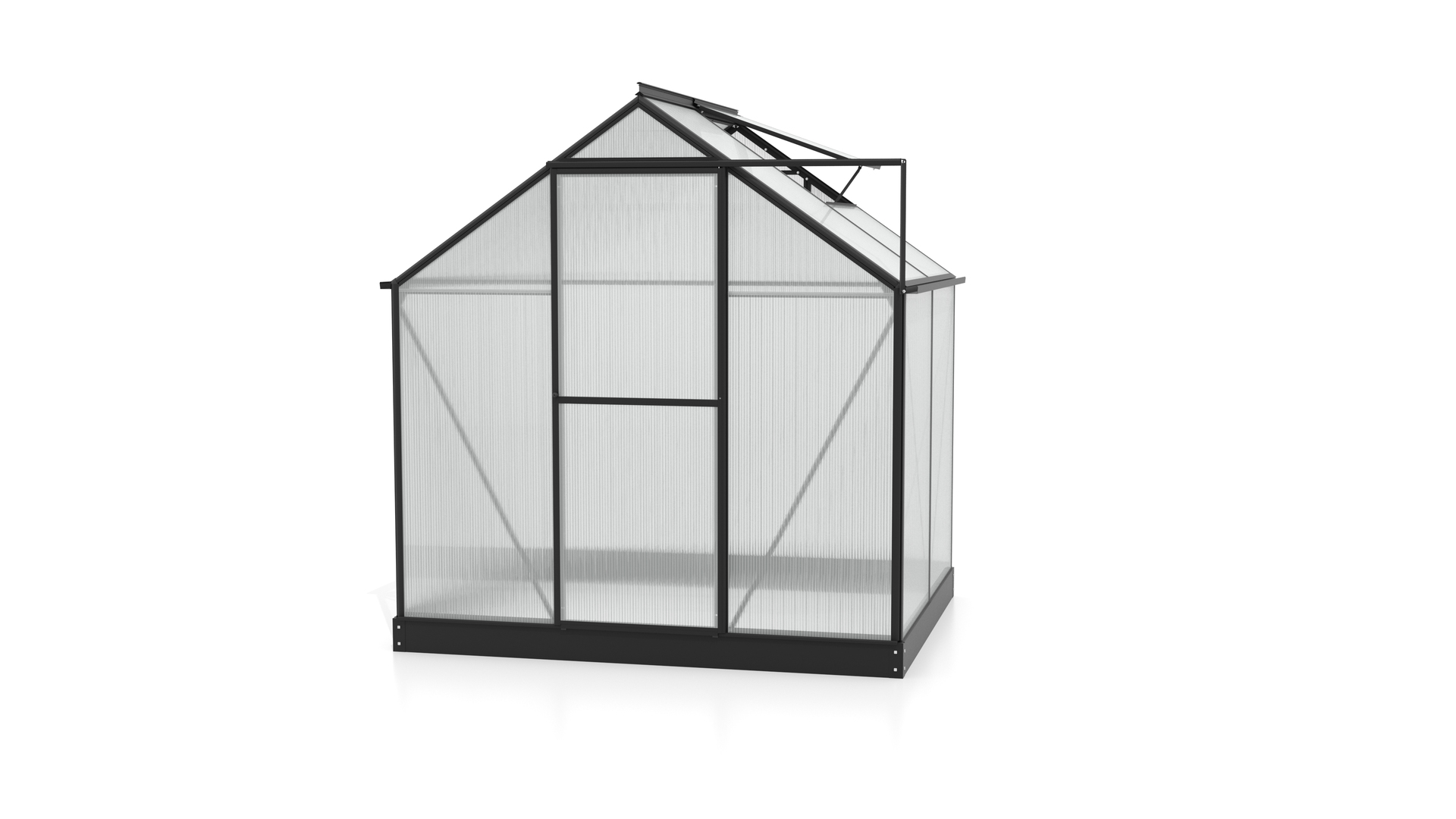– Breite: 1977, – Gewicht: 38,649, – Höhe: 1359, – Länge: 1550, – Material: Aluminium, Polycarbonat, Stahl, – Produktart: Gewächshausset