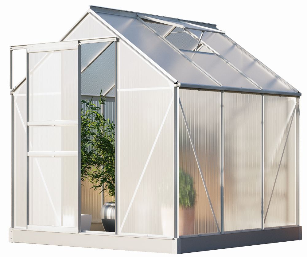 – Breite: 1950, – Firsthöhe: 1,97 m, – Gewicht: 27,7, – Höhe: 1970, – Länge: 1950, – Produktart: Gewächshaus, – Verglasung: 4 mm Hohlkammerplatten