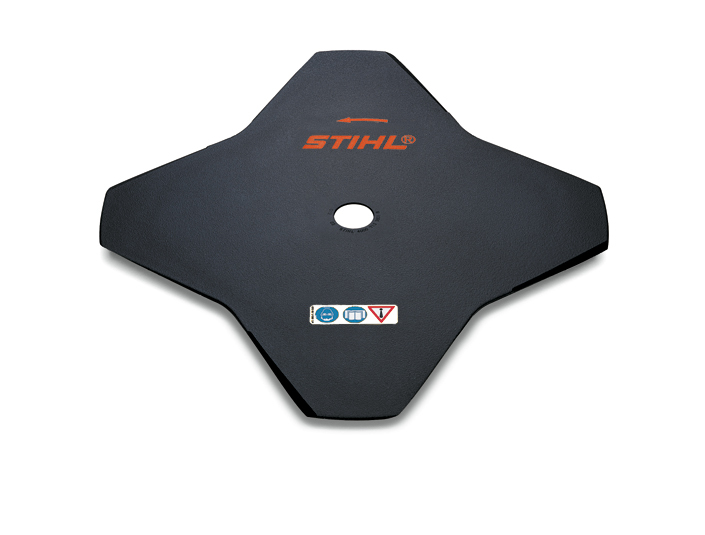 Grasschneideblatt aus Stahl mit vier Schneidkanten. Wendbar. Anwendungsschwerpunkt: Mäharbeiten in starkem, trockenem Gras, starkem Unkraut. Auch für Schilf und dünne Büsche geeignet. Nur mit Universalschutz verwenden.