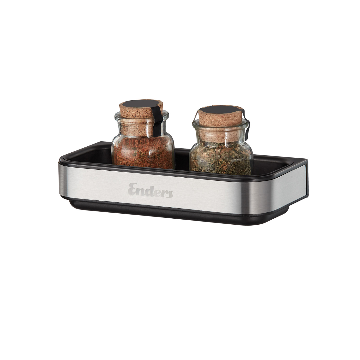 Enders Grill Mags Gewürzhalter Wenn es beim Grillen mal wieder heiß hergeht, ist es besonders wichtig, den Überblick zu behalten. Die GRILL MAGS® bieten die ideale Lösung dafür. Diese magnetischen Halter für Besteck, Grillrost, Gewürze, Küchenrollen und Flaschen sorgen nicht nur für Ordnung, sondern überzeugen auch mit intelligenten Details. Der Flaschenhalter ist mit einem abnehmbaren Öffner ausgestattet und fügt sich nahtlos in die Halterung ein, um nicht nur Stabilität, sondern auch ein aufgeräumtes Erscheinungsbild zu gewährleisten. Die GRILL MAGS® halten wortwörtlich, was sie versprechen: einen maximal aufgeräumten Grillbereich. * Abmessungen Außen: B 26,5 x T 10 x H 5 cm * Abmessungen Innen: B 21 x T 8,2 x H 4,8 cm * starke Magnete sorgen für sicheren Halt * Befestigung direkt und flexibel am Grill * modernes Design mit Edelstahlblende * schaffen Ordnung an deinem Grillplatz