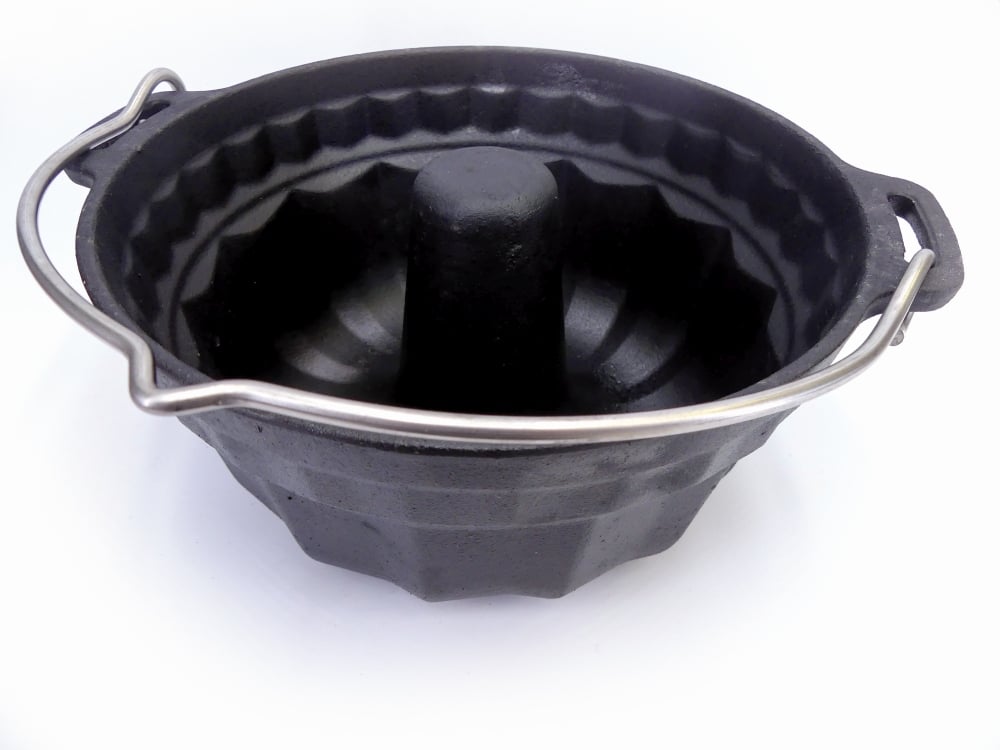 Durch die geniale Form des Gugelhupf Gefäßes, gelingt Kuchen aber auch Fleisch mühelos. Der Deckel aus Gusseisen hält die Hitze im Gefäß und kann gleichzeitig als Servierteller dienen.