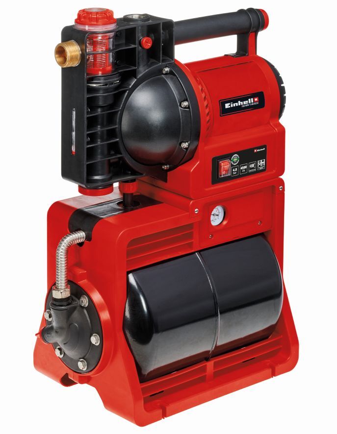 Das Einhell Hauswasserwerk GE-WW 1145 ECO verfügt über einen An- und Ausschalter, eine Wasserfüll-, Schmutz- und Sauganzeige. Eine große Wassereinfüllöffnung gewährt eine einfache Inbetriebnahme. Restlos entleert werden kann das Hauswasserwerk durch die Wasserablassschraube. Vollen Schutz gewähren Thermoschutzschalter sowie ein Vorfilter mit Rückschlagventil. Das Hauswasserwerk verfügt über hochwertige Gleitringdichtungen, einen zweiten Druckanschluss sowie langlebige Saug- und Druckanschlüsse aus hochwertigem Metall und einem großzügigen 20-Liter-Tank.