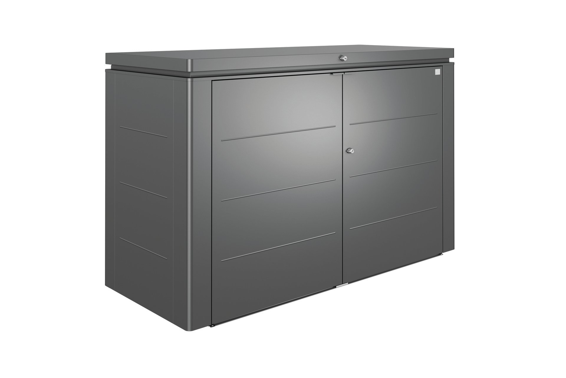 Die Einsatzmöglichkeiten des HighBoard sind dank Flügeltüren und Deckelöffnung vielfältig: ob als Stauraum für Kissen, Gartenutensilien oder als ideale Ergänzung zu Ihrer Outdoor-Küche – alles ist witterungsgeschützt und ordentlich verstaut. Die edle Optik wurde von Industriedesignern entworfen und ist garantiert ein Highlight auf jeder Terrasse. Vorzüge: regenwasserdicht, unsichtbare, integrierte Durchlüftung, Deckel aus beschichtetem Aluminium.