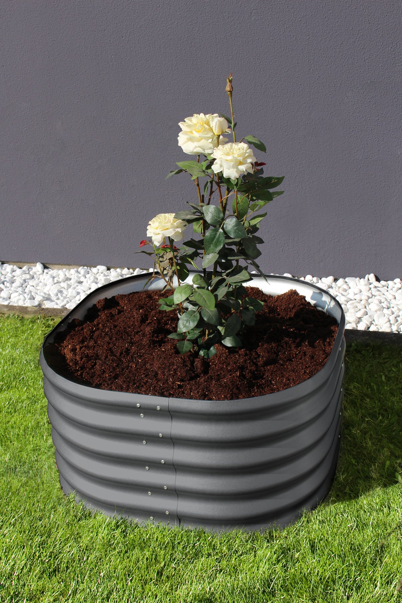Hergestellt aus dem extrem witterungsbeständigen Zincalume® benötigt das Hochbeet Terra im Gegensatz zu Holzbeeten keine Innenfolie: Es reagiert nicht mit organischen Materialien wie Erde und Pflanzen, wird also nicht dadurch beschädigt, gibt keine ungesunden Stoffe ab und verhält sich geschmacksneutral.