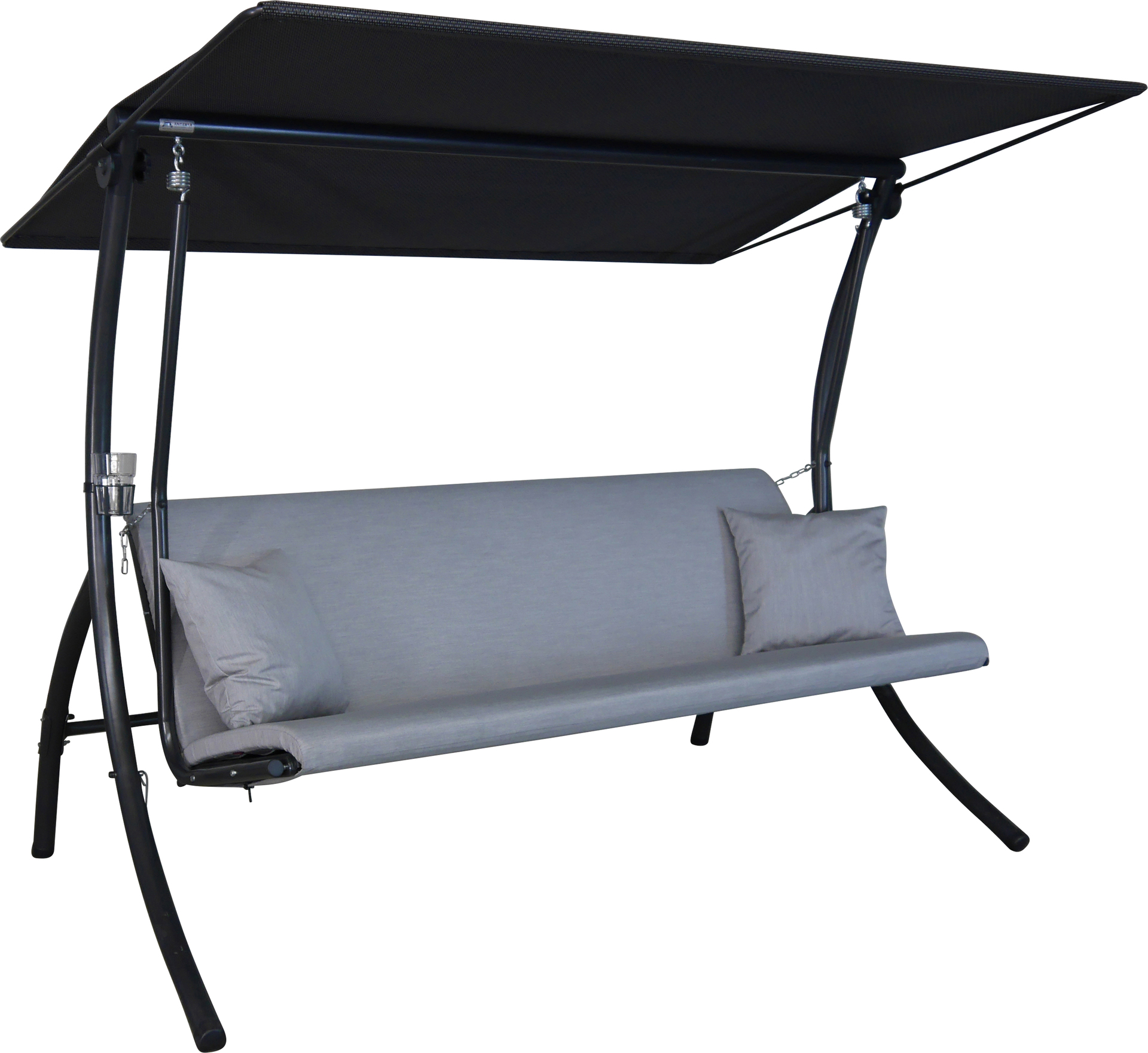 Die moderne 3-Sitzer Hollywoodschaukel Motion Zip ist mit wetterfesten Auflagen ausgestattet. Diese werden um den Sitz- und Lehnenrahmen gelegt und mit Reißverschlüssen daran befestigt, sodass diese nicht verrutschen können. Die Kissenbezüge bestehen aus einem wetterfesten Polyacryl-Stoff und sind mit einem schnelltrocknenden Schaumstoffkern gefüllt. Dank dieser speziellen Materialien können die Auflagen der Hollywoodschaukel Motion Zip auch bei schlechter Witterung und sogar bei Regen auf der Schaukel bleiben. Zwei passende Sofakissen sind ebenfalls im Lieferumgang enthalten. Das robuste Gestell der Hollywoodschaukel besteht aus verzinktem und pulverbeschichtetem Stahl. Das Sonnendach ist, aus wetterfestem Textilene Gewebe gefertigt und individuell verstellbar. Durch Vor- oder Zurückschieben oder Neigen des Daches ist stets optimaler Sonnenschutz gegeben. Ebenfalls verstellbar ist der Neigungswinkel der Lehne. Mit wenigen Handgriffen kann diese komplett zur Liegefläche abgeklappt werden. Der Sitz- und Lehnenrahmen besteht aus einem witterungsbeständigen Kunststoff und ist bereits werksseitig vormontiert, sodass der Zusammenbau der Hollywoodschaukel kinderleicht ist. Zur Selbstmontage, inkl. Montageanleitung. Made in Germany. In verschiedenen Farben erhältlich.