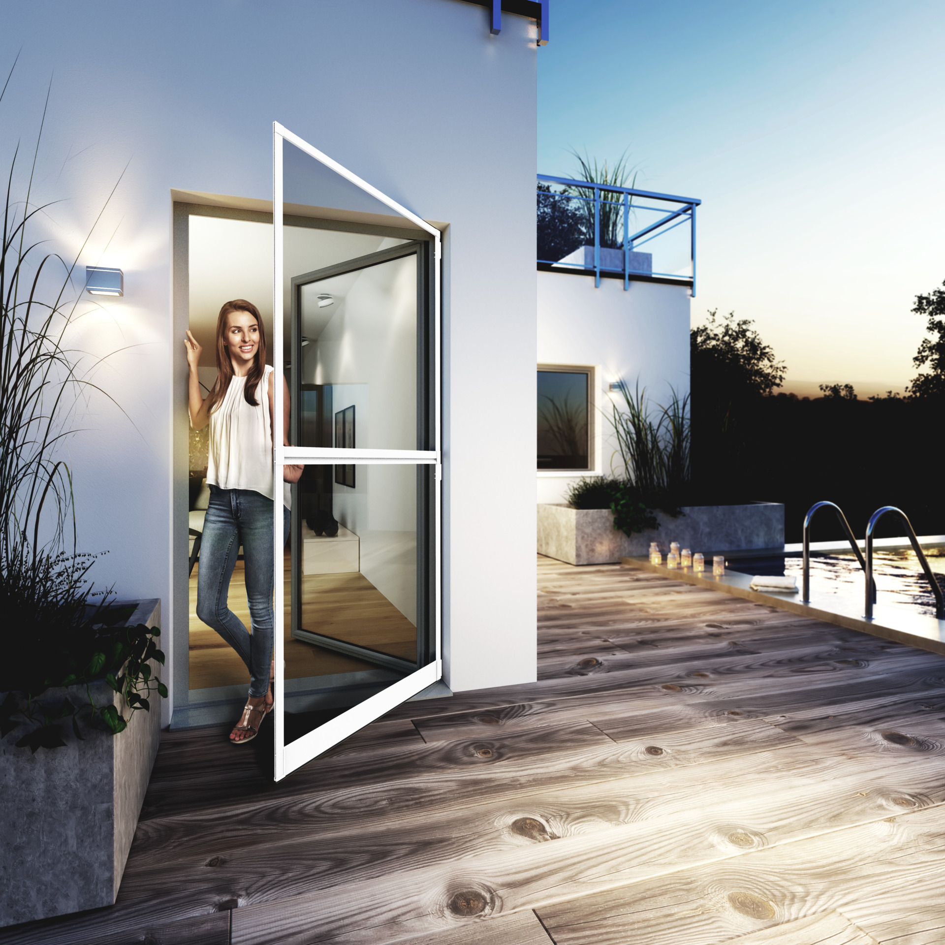 Zuverlässige Fliegengitter vor Fenster und Türen sind ein „Must have“ um ein mückenfreies Zuhause genießen zu können. Die solide Insektenschutztür EXPERT von Windhager passt optimal für einflügelige Balkon- und Terrassentüren (mit und ohne Bodenschwelle). Das „Perfect View“ Fiberglasgewebe hält Ungeziefer fern ohne den Blick nach draußen einzuschränken. Eine Bodenbürste dichtet zusätzlich nach unten hin ab und versperrt kriechenden Insekten den Weg.