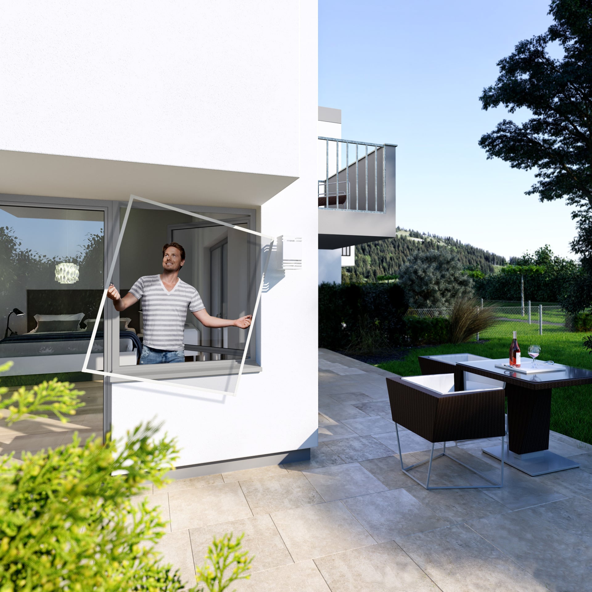 Damit der Wohnbereich zur insektenfreien Zone wird, braucht es einen zuverlässigen Mückenschutz an Fenster und Türen. Der fixe Rahmen – aus Aluminiumprofilen und Kunststoffecken – verleiht dem Windhager Fliegengitterfenster PLUS seine Stabilität. Das eingekederte, reißfeste Fiberglasgewebe und die umlaufend abdichtende Bürste schützen verlässlich vor fliegenden und kriechenden Insekten. Das schmale Fliegengitter wird mit Edelstahl-Einhängewinkeln bohrfrei am Fensterrahmen befestigt und passt für die gängigsten Fenstertypen. Bei Bedarf kann es an den seitlichen Grifflaschen ein- und ausgehängt werden.