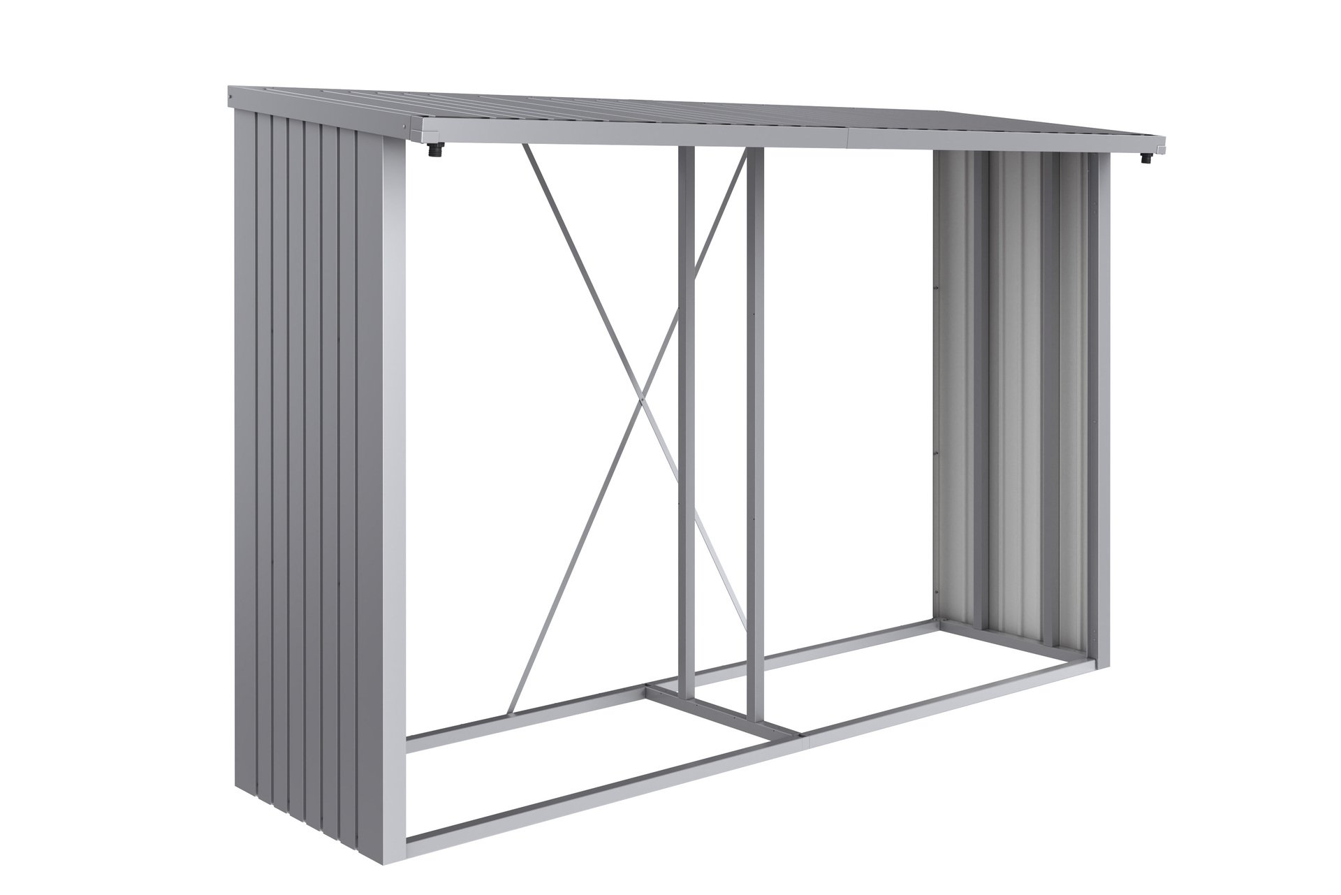 – Breite: 3007, – Farbe: silber-metallic, – Gewicht: 54,7, – Höhe: 1990, – Länge: 1020, – Material: Stahl, – Produktart: Holzlager