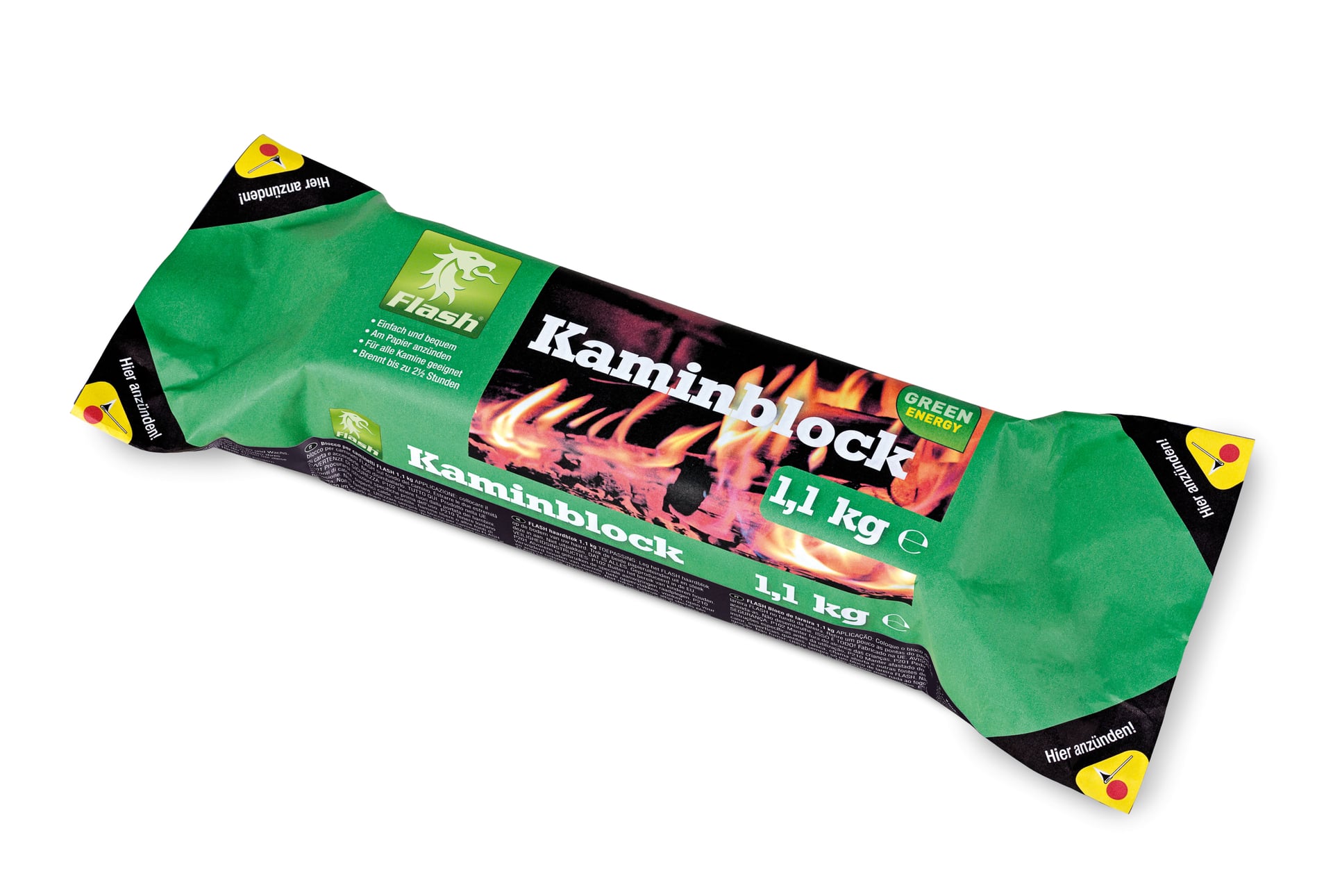 Kaminblock aus Sägespänen und biologischem Wachs. Ohne Bindemittel. Brenndauer bis zu 2,5 Stunden ohne Funkenflug.