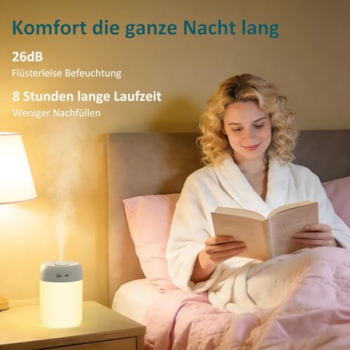 Luftbefeuchter für Schlafzimmer Pflanzen Growbox Bedroom Kinderzimmer,Klein Tisch Leise Air Humidifier,Tragbarer Ohne Kabel Mini Raumbefeuchter 650ML-grey