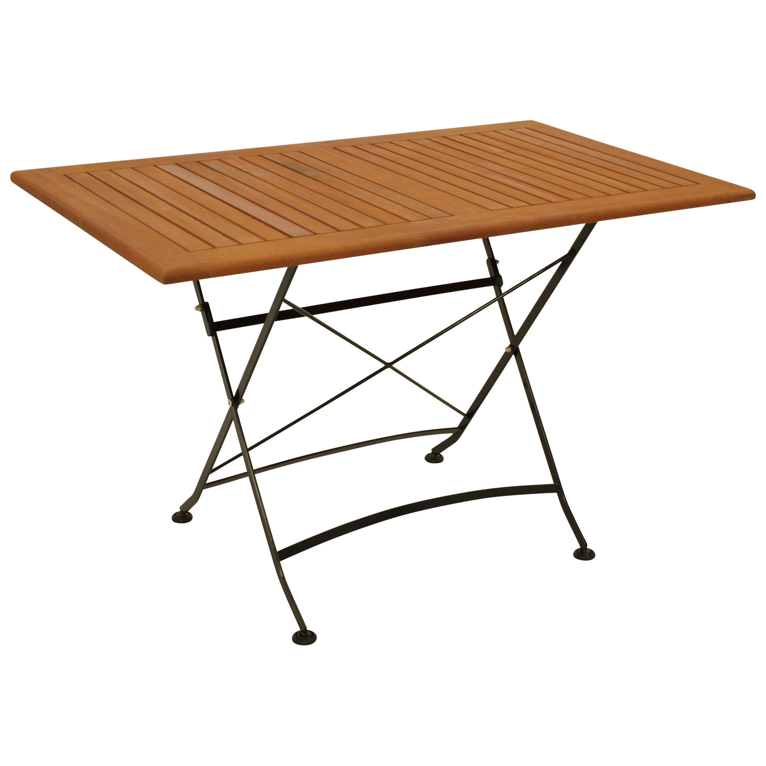 Klapptisch 120x70cm mit schwarzem Flachstahlgestell und Belattung aus Eukalyptusholz, geölt, FSC®-zertifiziert.