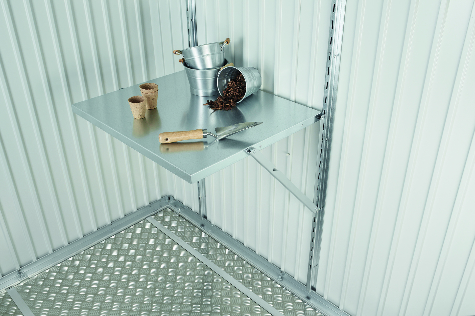 Eine stabile Arbeitsfläche, die rasch rauf und hinunter geklappt werden kann. Um die Langlebigkeit zu gewährleisten ist der Biohort Klapptisch zusätzlich feuerverzinkt.
