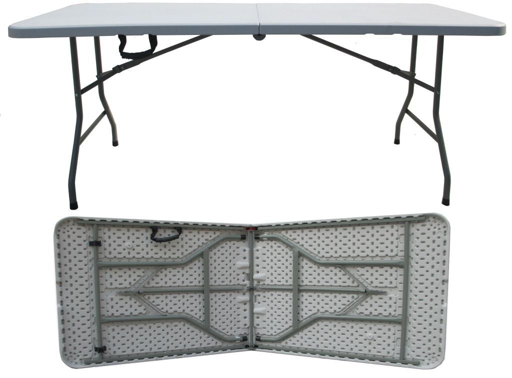 Dieser platzsparend zusammenklappbare Koffer-Klapptisch ist ideal für Haus und Garten.
