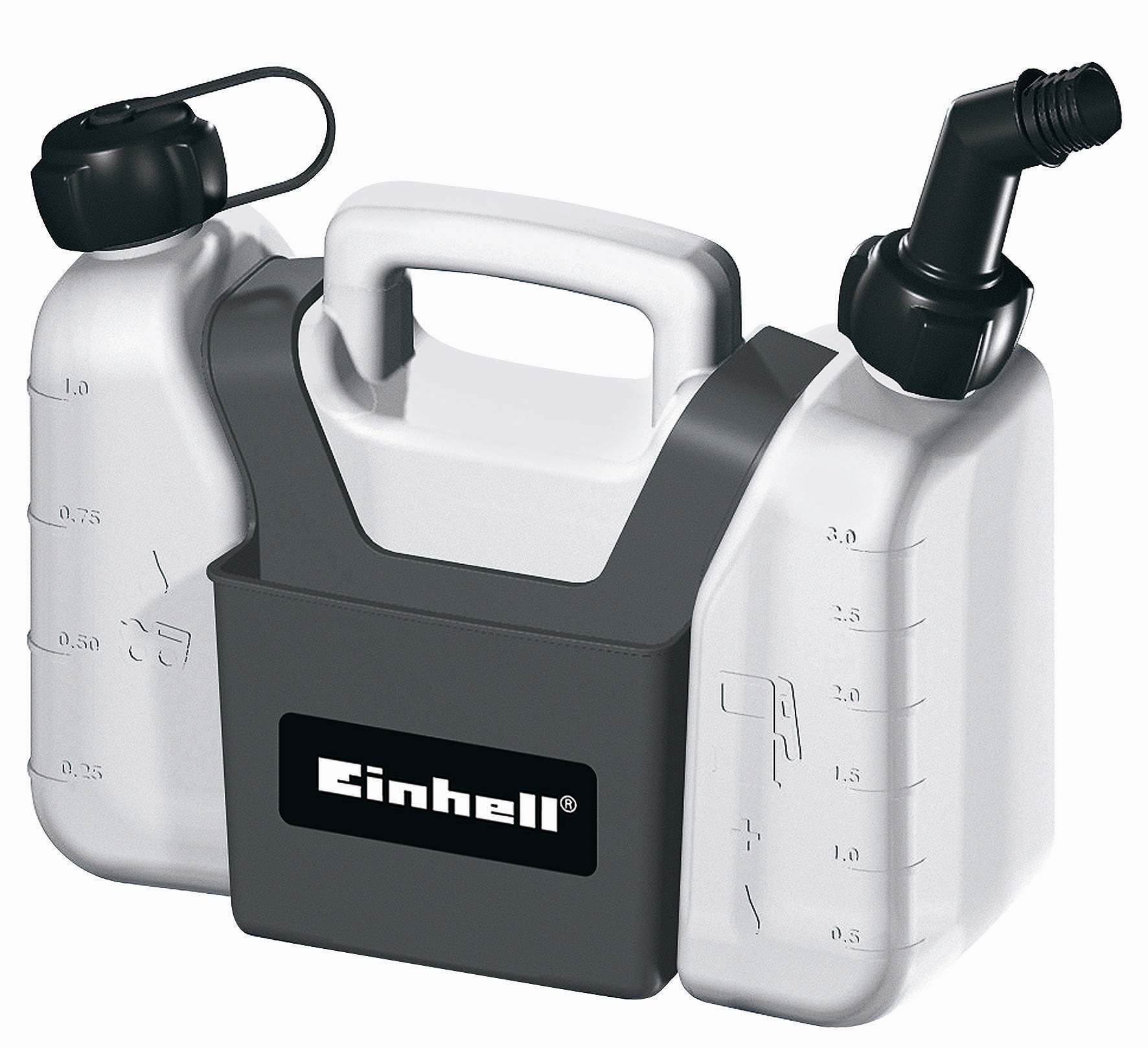 Der Einhell Kombi-Kanister stellt eine praktische Ergänzung des Kettensägenzubehörs dar. Wird mit der Kettensäge bei Holzarbeiten hantiert, genügt ein Griff, und für Nachschub der Betriebsflüssigkeiten ist gesorgt. Der Kombi-Kanister (1, 25 l Öltank, 3 l Benzintank) ist der ideale Helfer zur Befüllung von Benzingeräten. Neben den beiden kombinierten Kanistern ist auch eine praktische Werkzeugtasche integriert. Die Schraubverschlüsse sind mit einer Kindersicherung ausgestattet, um so mit Gefahren zu vermeiden. Der Einfüllstutzen sorgt für das sichere Befüllen desmotorbetriebenen Gerätes, so dass für die Umwelt bei diesem Arbeitsschritt keine Gefahren verbunden sind. Der Behälter wurde aus hochwertigem, schlagzähmem Kunststoff konzipiert und meistert auch anspruchsvolle Arbeitseinsätze dank seiner Robustheit.