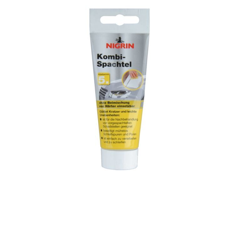 Gebrauchsfertiger Einkomponenten-Spachtel, der einfach zu verarbeiten und zu schleifen ist. Er eignet sich zum Glätten von Kratzern, leichten Unebenheiten und Schleifspuren sowie zur Nachbehandlung von vorgespachtelten Schadstellen