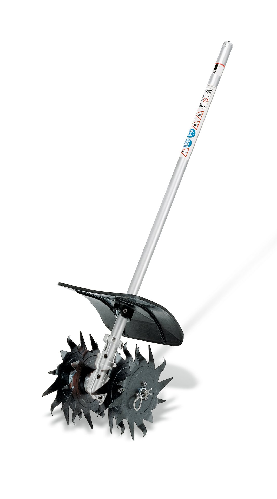 KombiWerkzeug Bodenfräse für das STIHL KombiSystem. Die Bodenfräse zerkleinert locker und leicht selbst harte oder schwere lehmige Böden. Ideal zum Rekultivieren, Auflockern oder platzsparenden Pflanzen. Gewicht: 4,1 kg. Gesamtlänge: 100 cm. Zugelassen für alle KombiMotoren und FR 130 T.