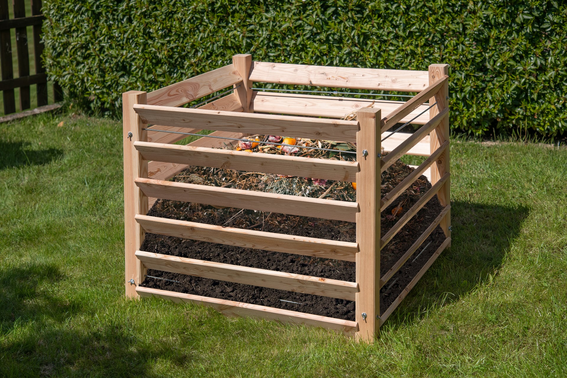 Der Westmann Komposter überzeugt nicht nur mit einem Füllvolumen von 800 Litern, sondern punktet auch im Thema Nachhaltigkeit. Der Holzkomposter besteht zu 100 % aus Lärchenholz aus heimischen Wäldern. Lärchenholz ist eines der härtesten einheimischen Hölzer und gilt als besonders stabil und langlebig.