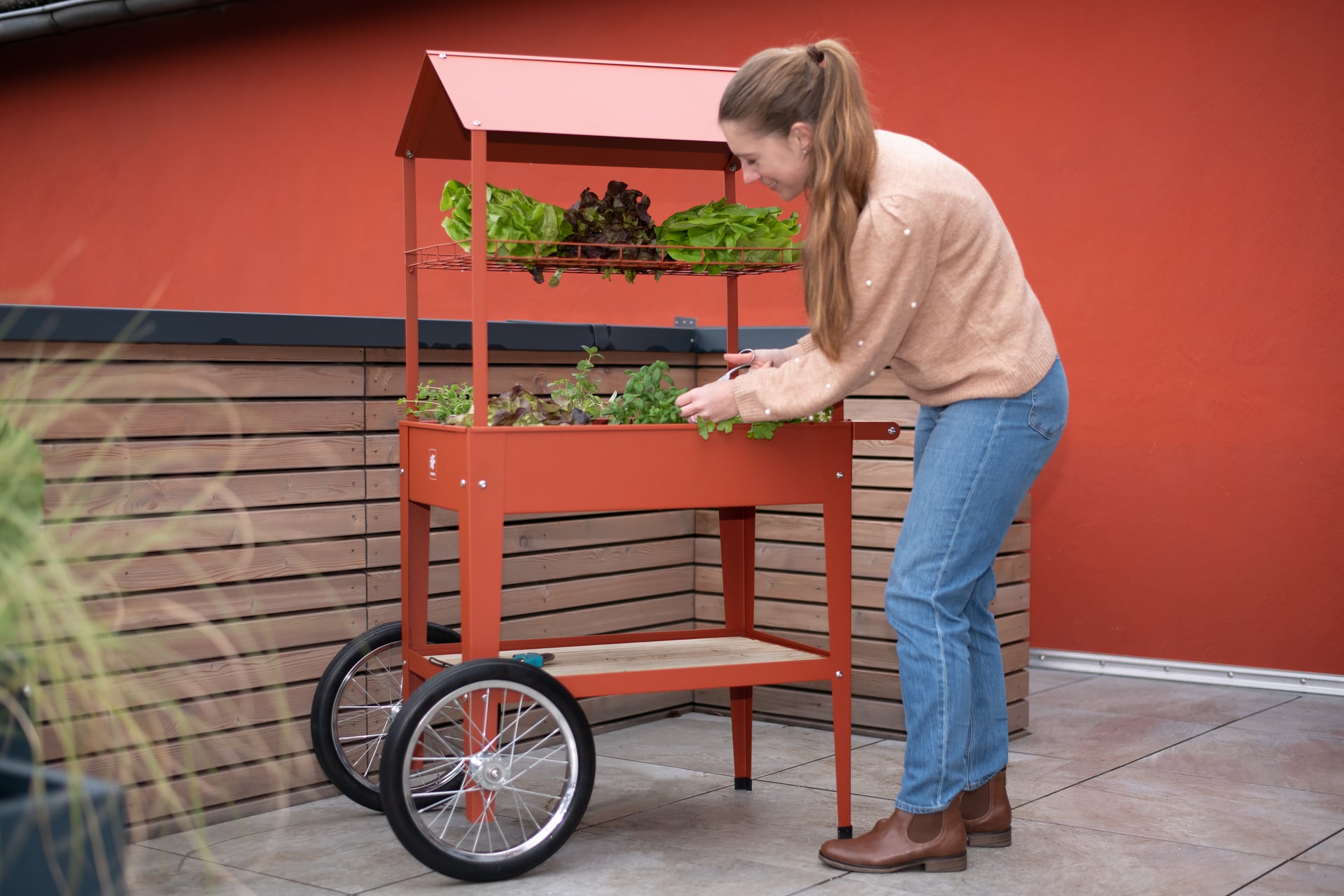 Der Herstera Garden verbindet modernes Design mit rückenschonendem Gärtnern in angenehmer Stehhöhe.