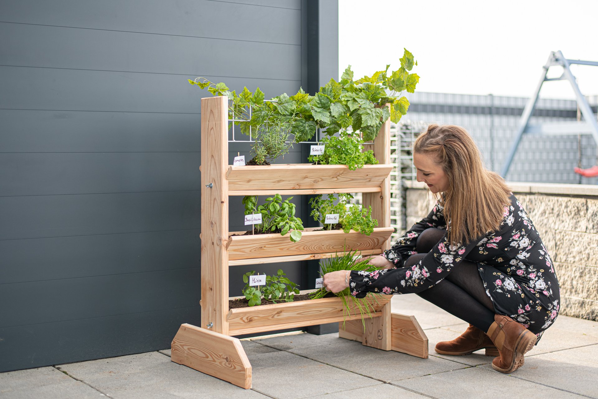 Dieses praktische Kräuterregal aus Lärchenholz bietet großen Gärtnerspaß auf kleinem Raum. Das unbehandelte und hochwertige Lärchenholz stammt zu 100% aus heimischen Wäldern und überzeugt so nicht nur durch seine Nachhaltigkeit, sondern zeichnet sich außerdem durch seine Langlebig- und Widerstandsfähigkeit aus.