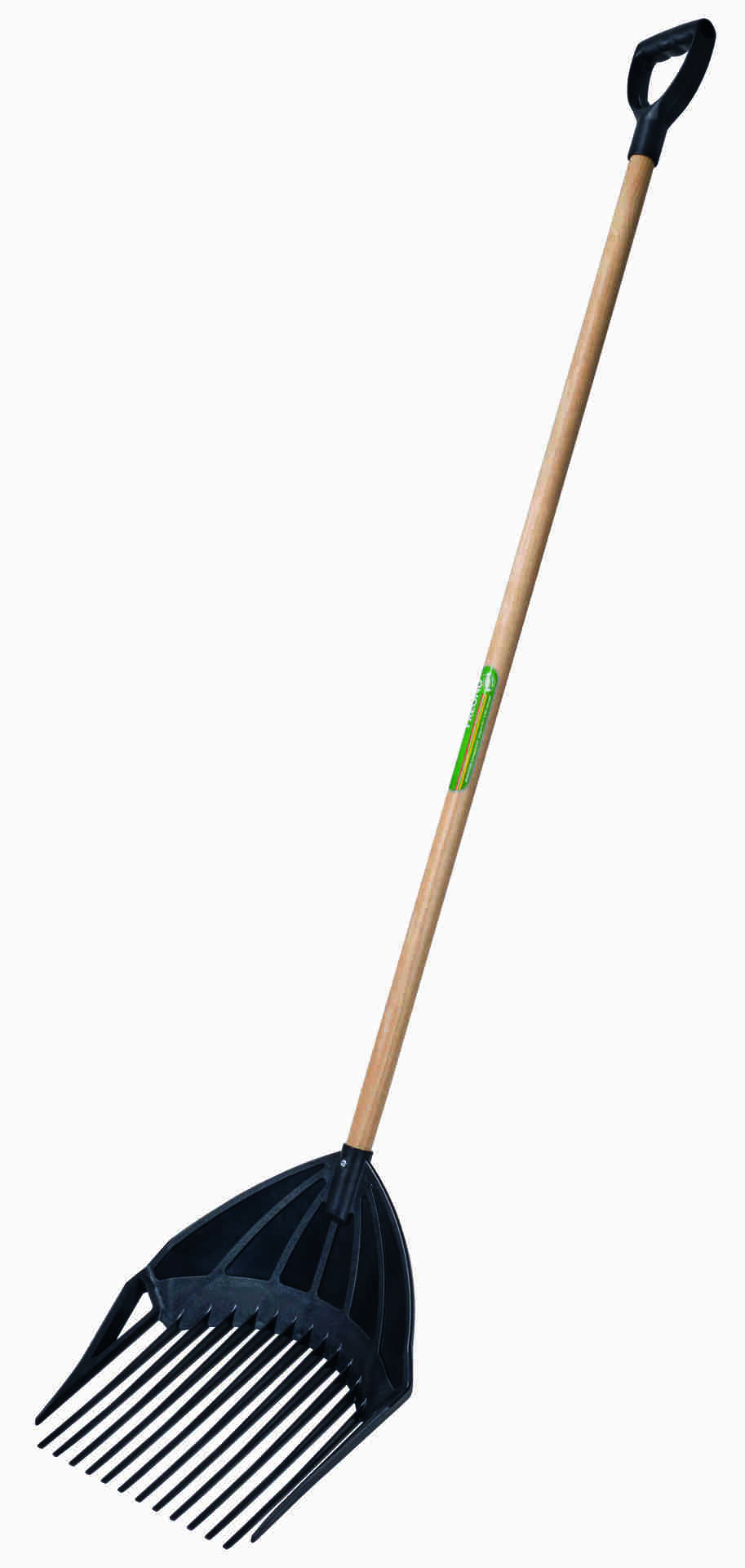 Kunststoff-Laubgabel schwarz, 14 Zinken, mit FSC zertifiziertem Stiel mit Kunststoff-D-Griff.