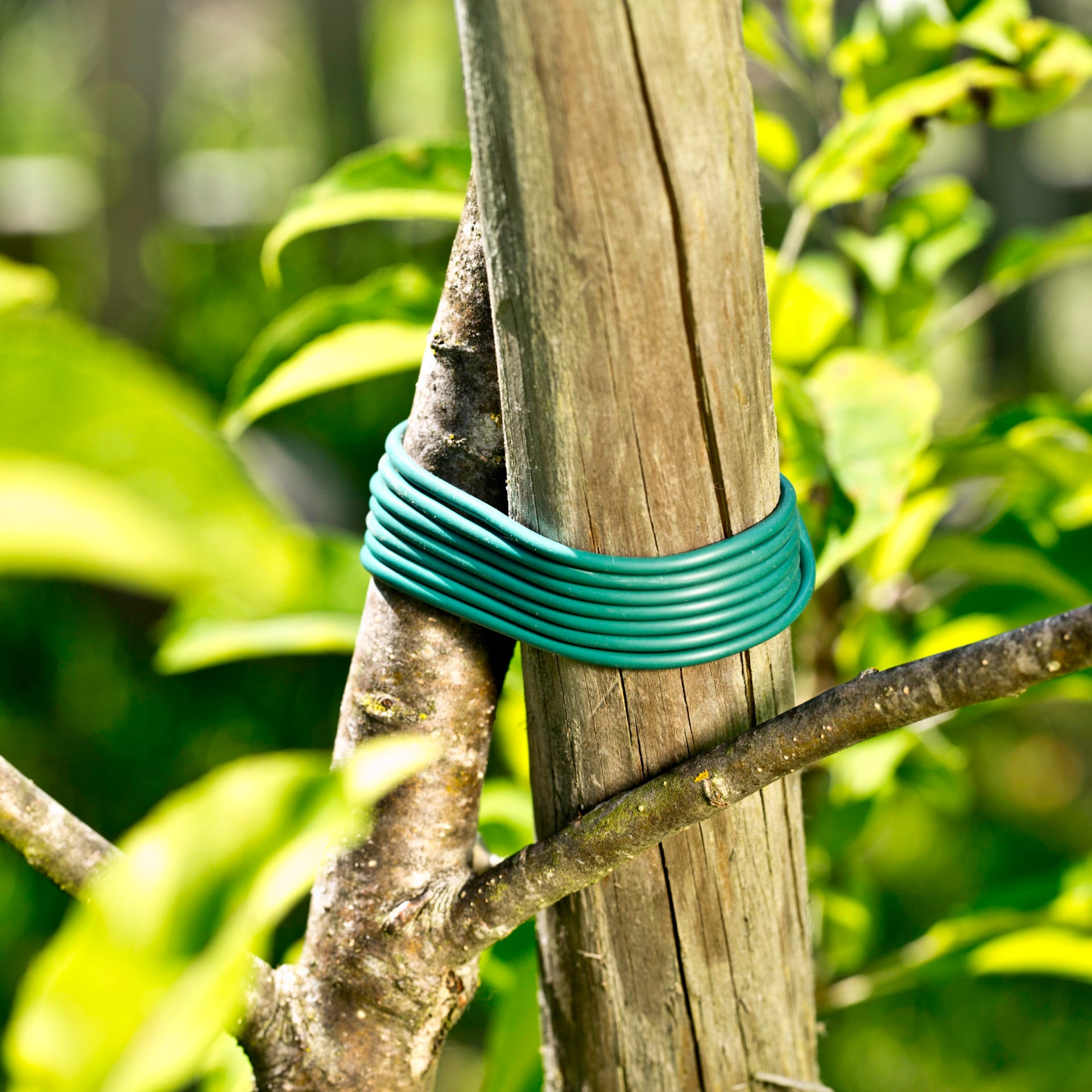 Schnur zur flexiblen Befestigung von Pflanzen an Rankgittern oder Stäben.Elastische Schnur aus Kunststoff, die mit der Pflanze mitwächst.  Länge: 23 m