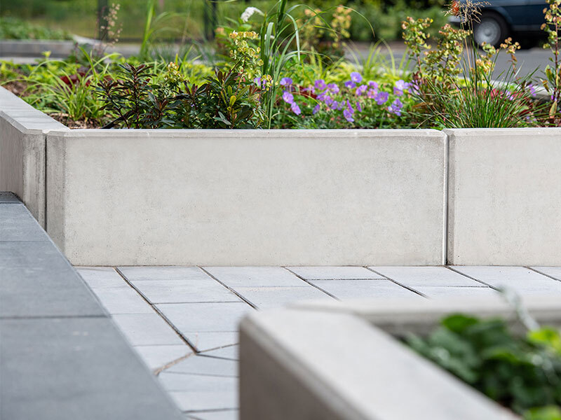 Stark und optimal händelbar: bewehrte L-STEINE mit passenden, zweiteiligen Ecksteinen.