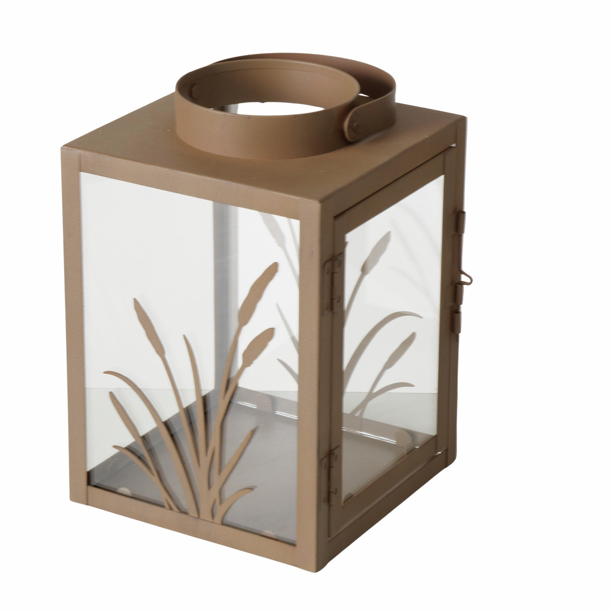 – Breite: 13,5, – Farbe: Braun, – Gewicht: 0,73, – Höhe: 20, – Länge: 13,5, – Material: Glas/Metall, – Produktart: Laterne