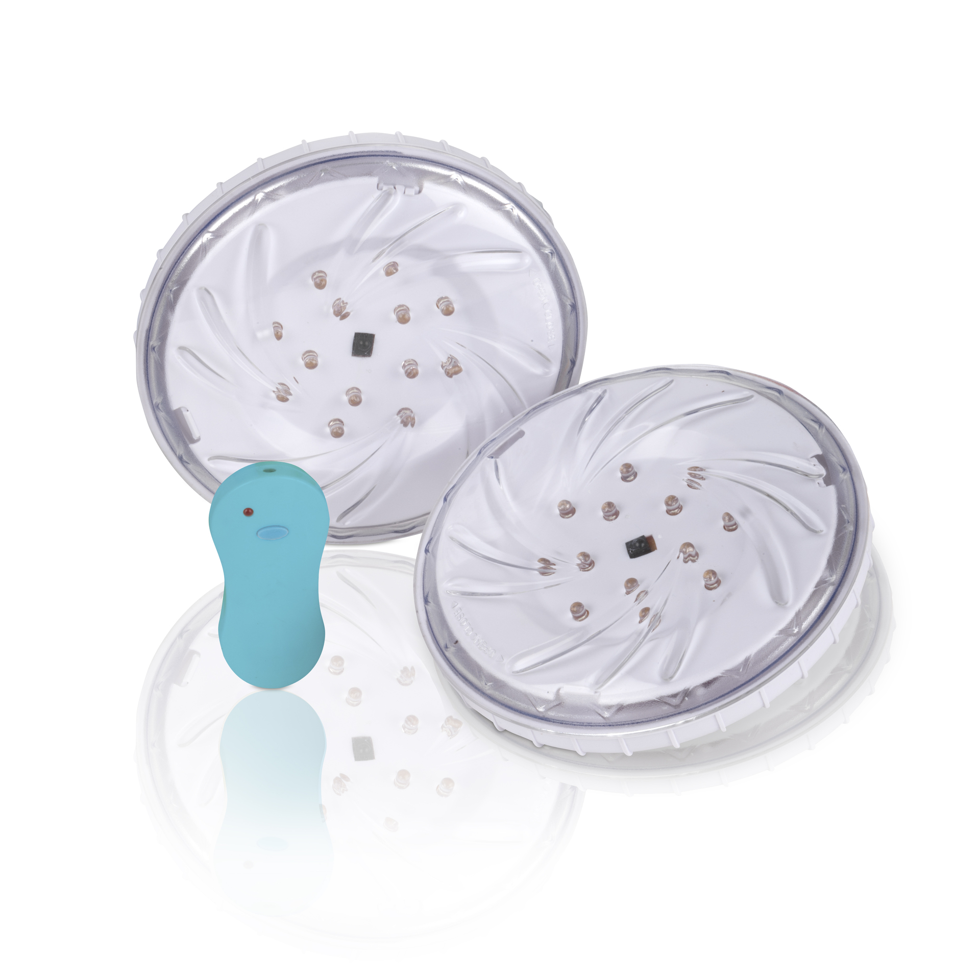 Set aus 2 LED-Projektoren für Aufstellpools. Mit Magnet an der Platte haften. Inklusive Fernbedienung