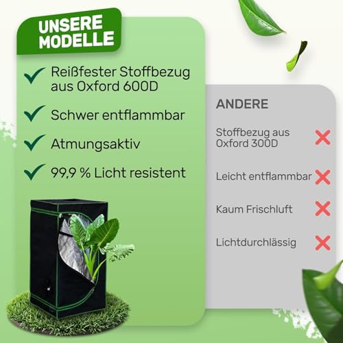 GA Growzelt 150x150x200 cm (5x5) anzuchtzelt Zelt Reflektierendes Mylar-Hydrokultur-Gewächshauszelt wasserdichter Bodenwanne für Zimmerpflanzenanbau Schwarz