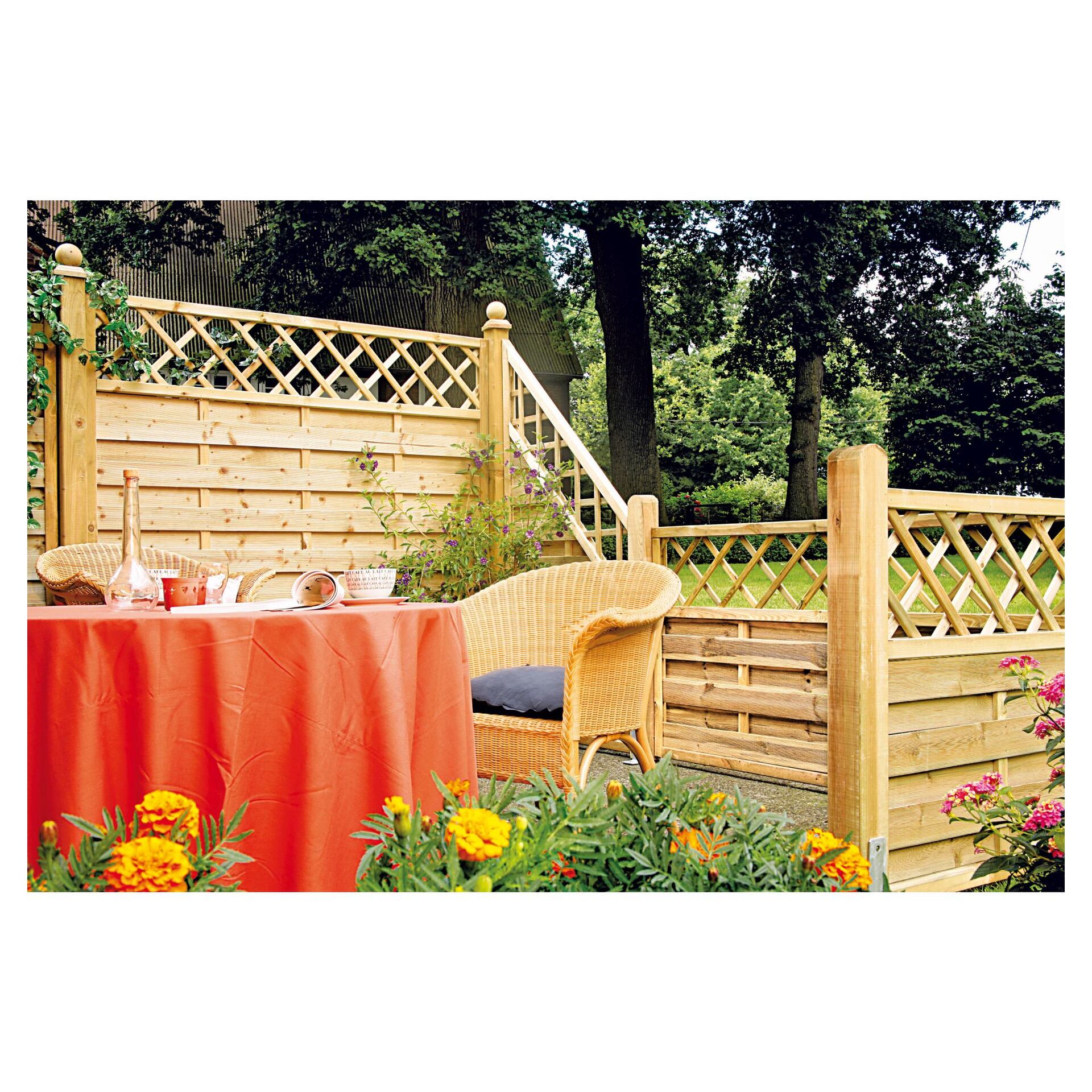 Die Maxi-Massiv-Serie wird aus Kiefer/Fichte gefertigt, druckimprägniert grün, die Rahmen sind ca. 45 x 45 mm, geklammert, die Lamellen ca. 8 x 95 mm, geriffelt und Edelstahl verschraubt, Rankgitterleisten sind ca. 12 x 30 mm, die Maschenweite beträgt ca. 10 x 10 cm. Achtung: Biozidprodukte vorsichtig verwenden. Vor Gebrauch stets Etikett und Produktinformationen lesen.