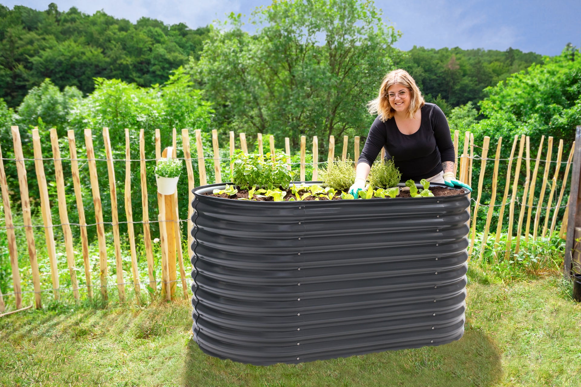 Das massive, moderne und langlebige Hochbeet besteht aus galvanisch verzinktem Stahl.